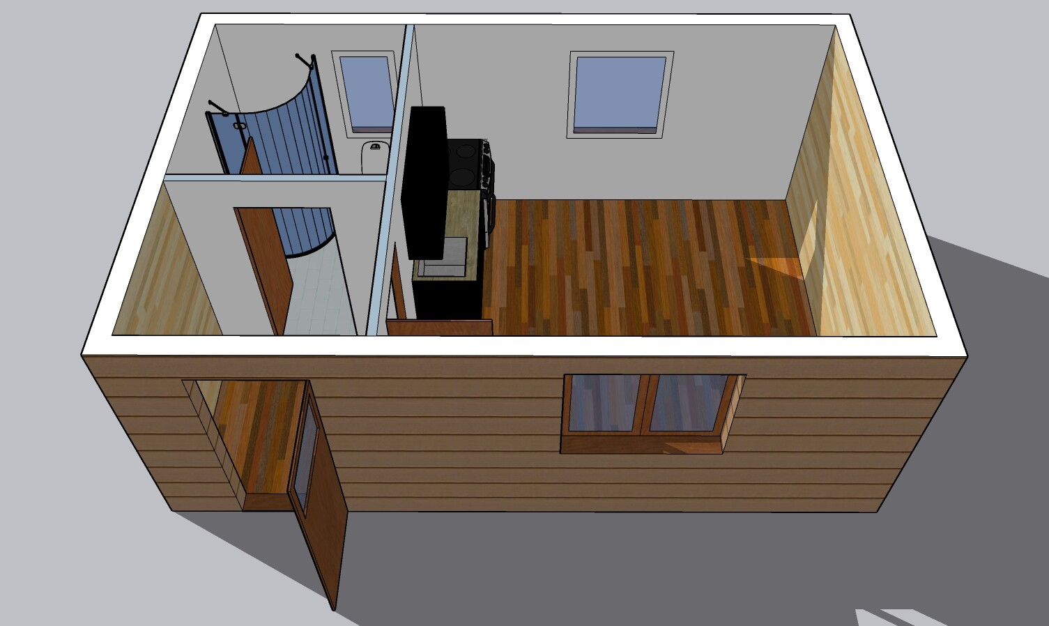| Výbava: | Nový mobilheim, dřevěný obklad, vnitřní stěny sádrokarton a dřevěný obklad, strop dřevěný obklad, kuchyně, (dřez, digestoř, varná deska s troubou), koupelna (WC, umyvadlo, sprchový box, bojler 20l) |