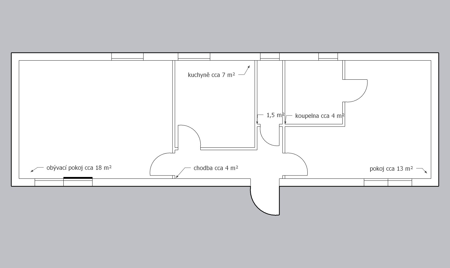 | Ausgelegt: | 1 ložnice, obývací pokoj, kuchyně, koupelna, 2WC |