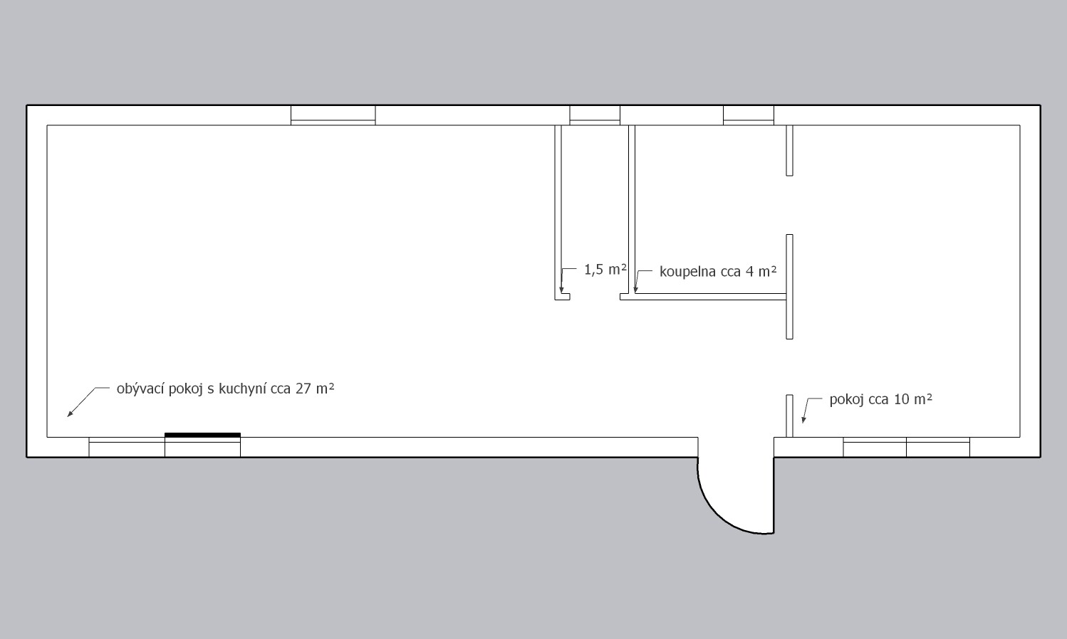 | Ausgelegt: | 1 ložnice, obývací pokoj s kuchyňským koutem, koupelna, 2 WC |