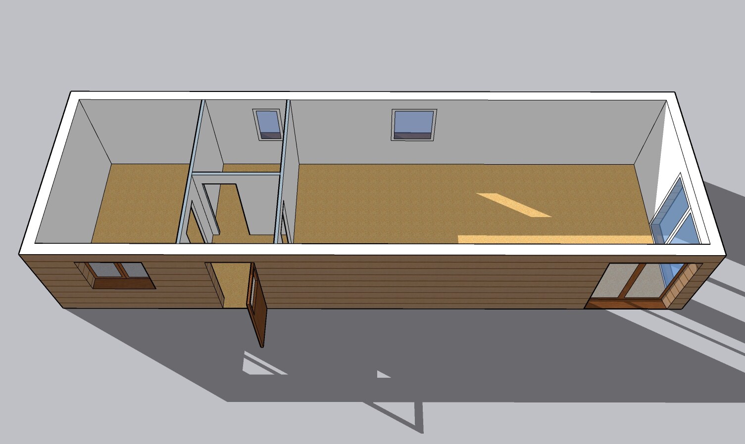 | Výbava: | Nový mobilheim jako holobyt, dřevěný obklad, 2 francouzská okna, vnitřní stěny sádrokarton, strop dřevěný obklad, možnost nainstalování podlahy, obložek a vnitřních dveří, koupelnového vybavení, kuchyně |