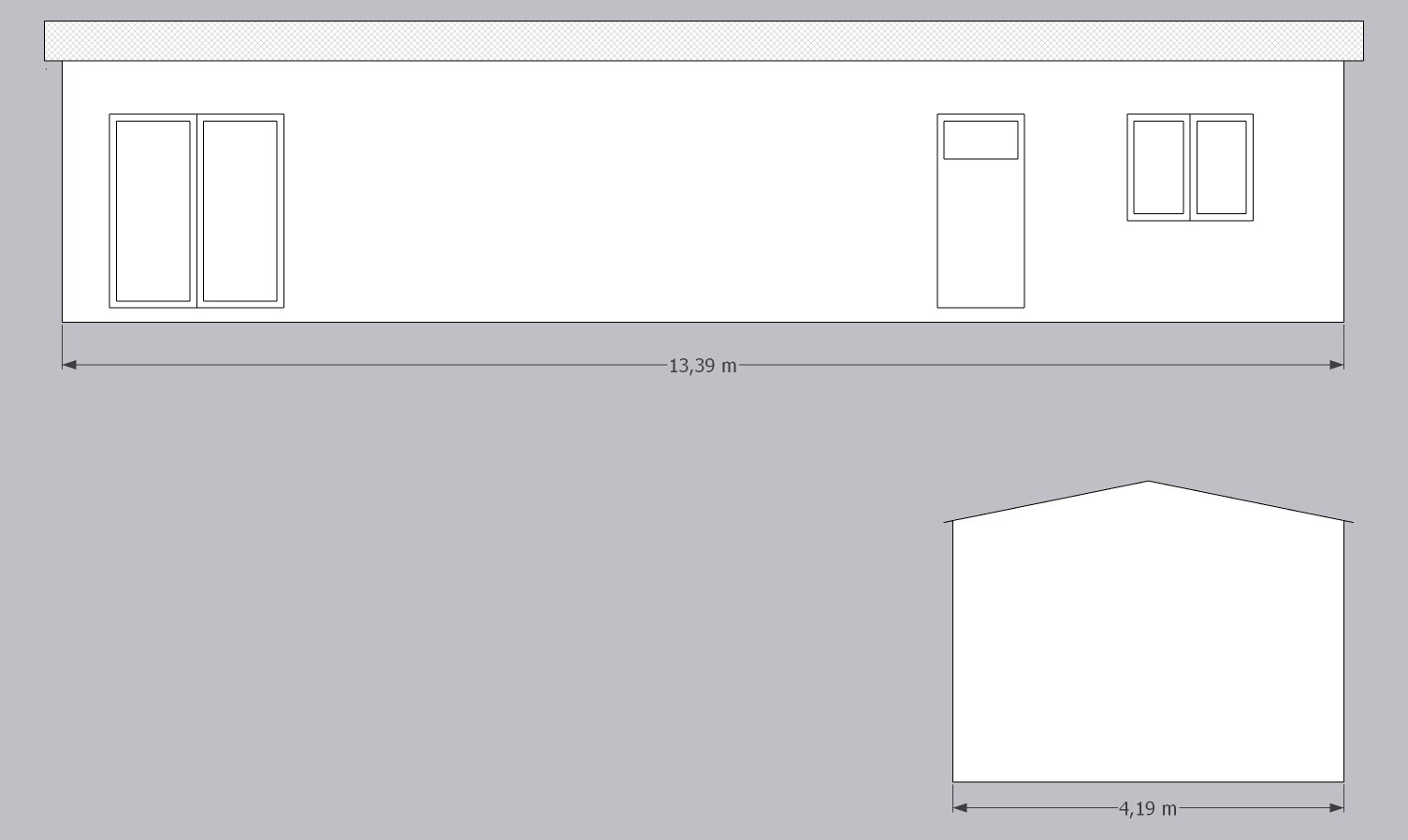 | Gröse: | 13,39 x 4,19 (cca 56m2) |
