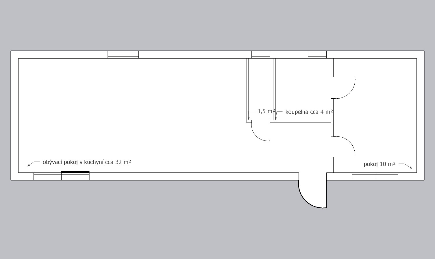| Ausgelegt: | 1 ložnice, obývací pokoj s kuchyňským koutem, koupelna, 2 WC |