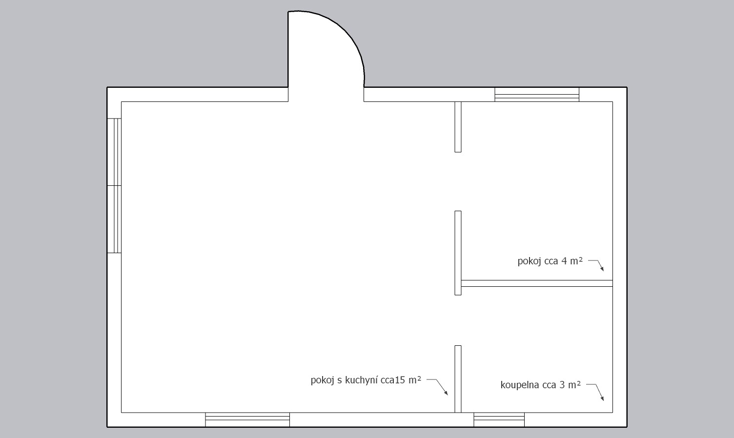 | Ausgelegt: | 1 ložnice, obývací pokoj s kuchyňským koutem, podkroví, koupelna, WC |