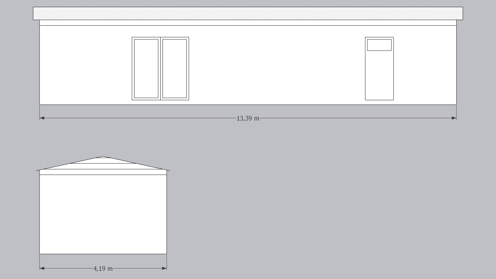| Gröse: | 13,39 x 4,19 (56m2) |