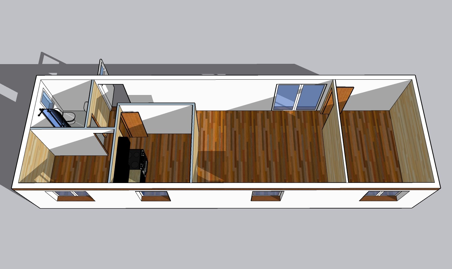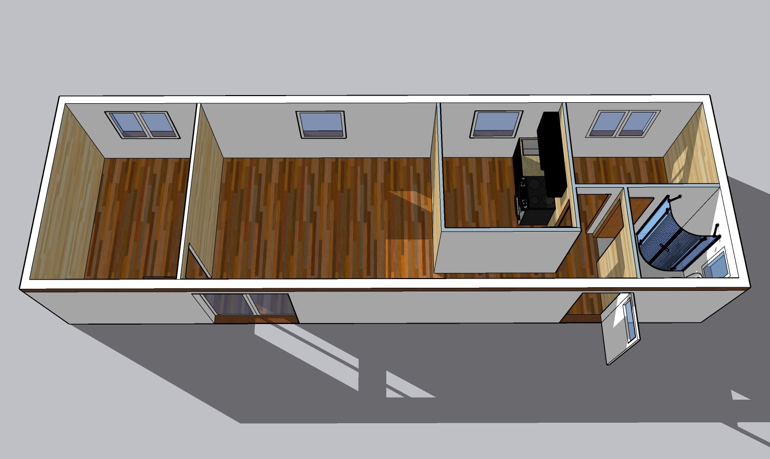 | Výbava: | Nový mobilheim, fasádní lepidlo s dřevěným obkladem, vnitřní stěny sádrokarton a dřevo, strop dřevěný obklad, kuchyně (dřez, digestoř, varná deska s troubou), koupelna (WC, umyvadlo, sprchový box, bojler 80l) |