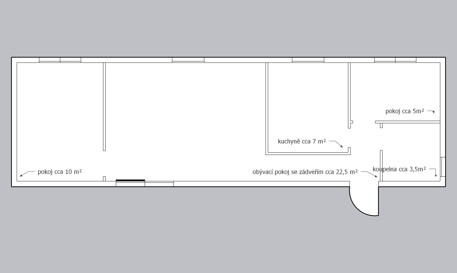 | Vytápění: | Rozvod pro elektrická topidla, možnost instalace krbových kamen nebo klimatizace |