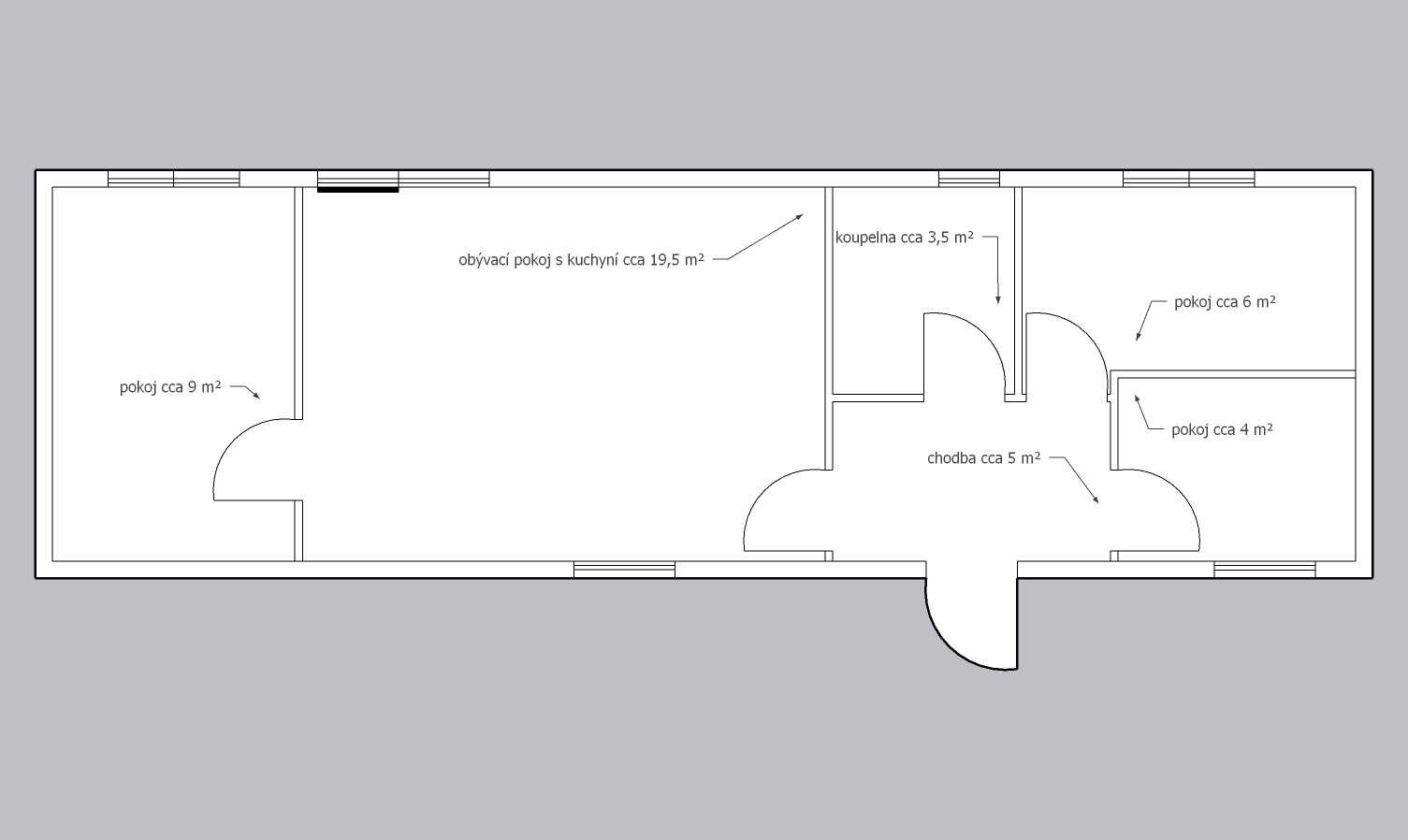 | Vytápění: | Rozvod pro elektrická topidla, možnost instalace krbových kamen nebo klimatizace |