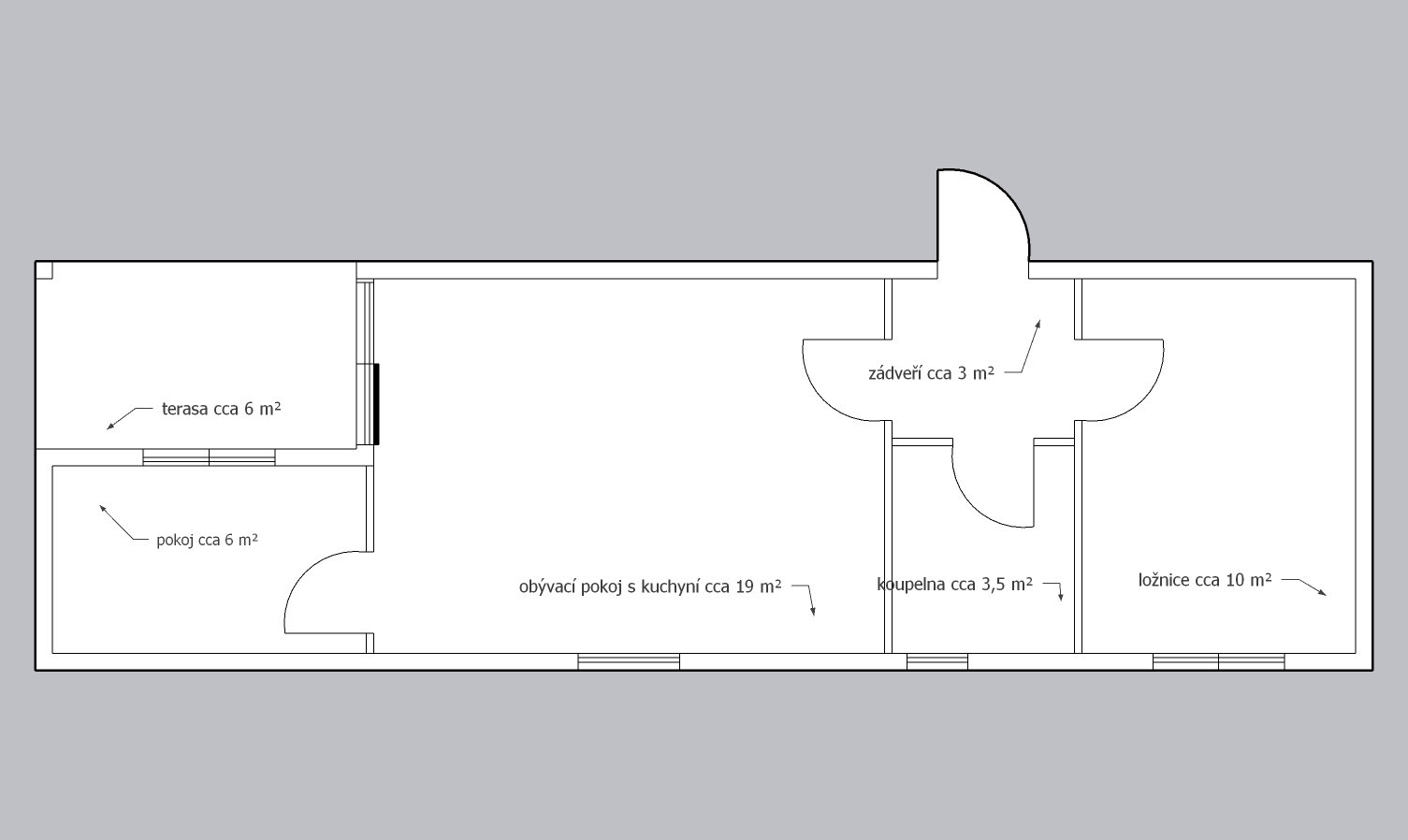 | Gröse: | 13,19 x 4,19m (cca 56m2) |