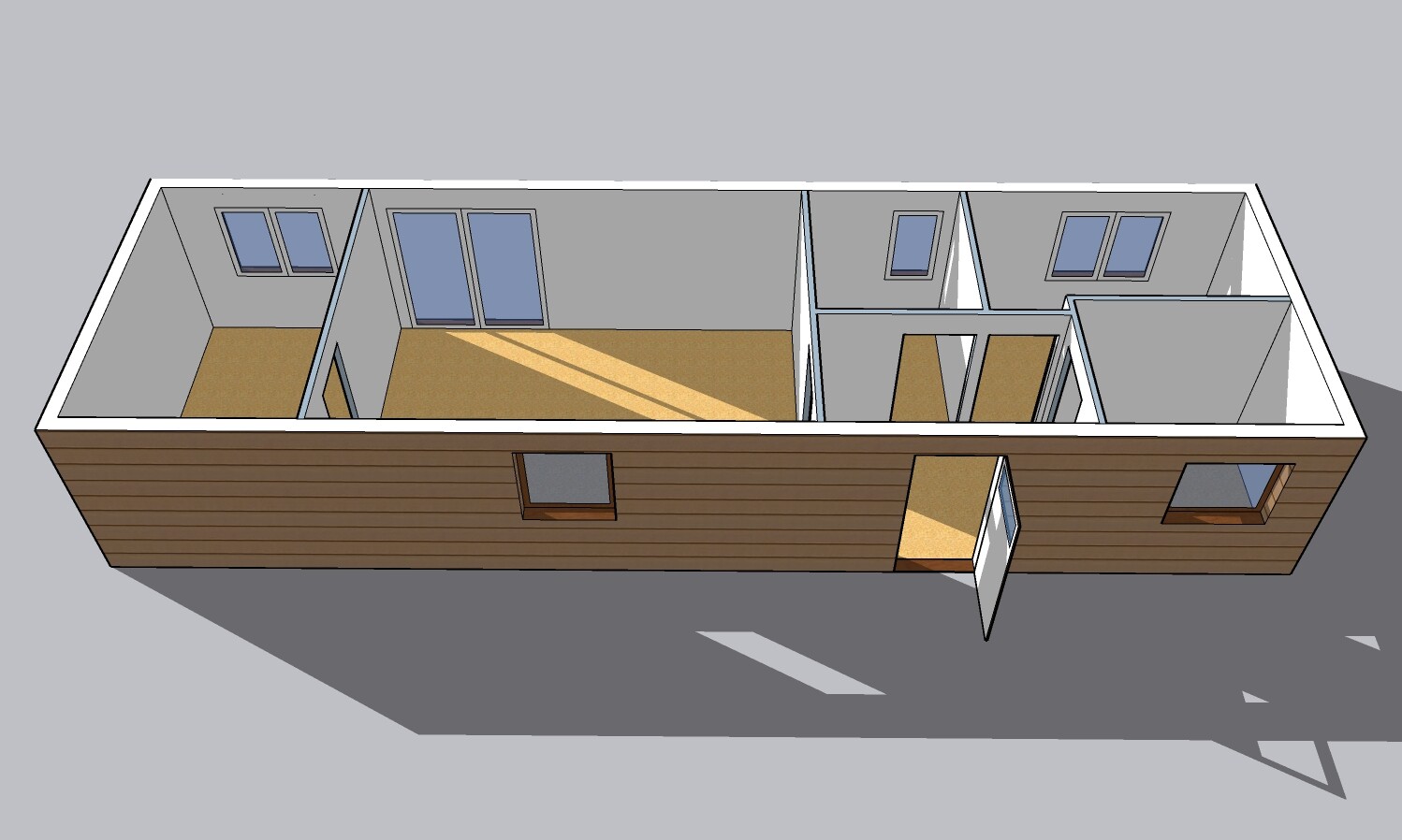 | Výbava: | Nový mobilheim jako holobyt, dřevěný obklad, vnitřní stěny sádrokarton, strop dřevěný obklad, možnost nainstalování podlahy, obložek a vnitřních dveří, koupelnového vybavení, kuchyně |