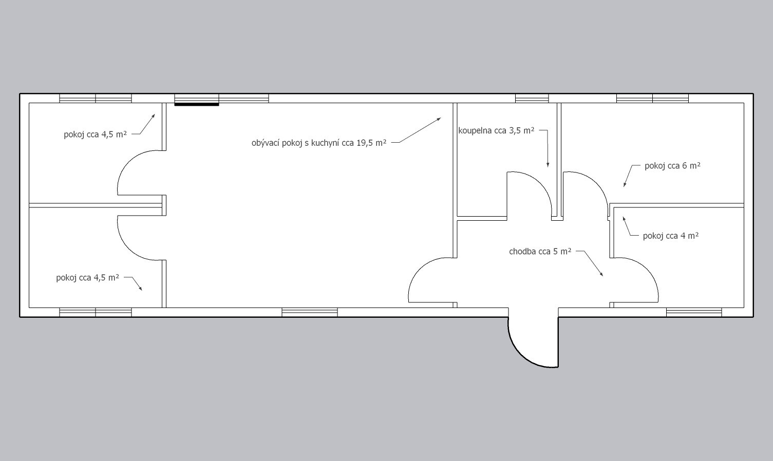 | Ausgelegt: | 4 ložnice, obývací pokoj s kuchyňským koutem, koupelna, WC |